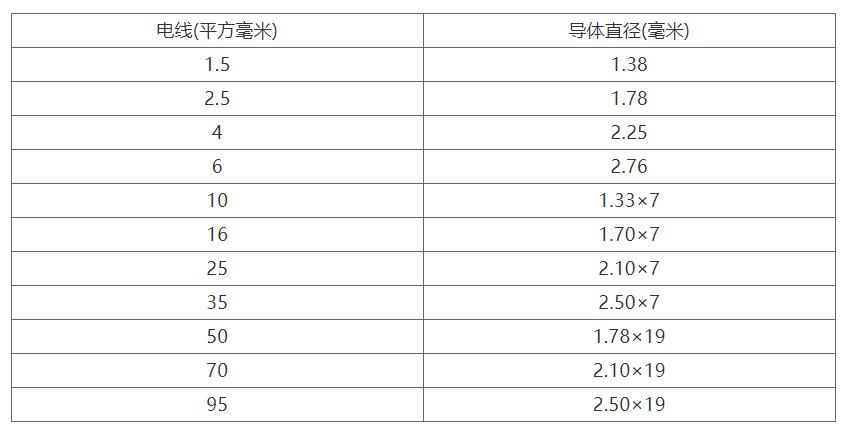 注:以上導(dǎo)體直徑指BV 塑銅線及 BLV 塑鋁線
